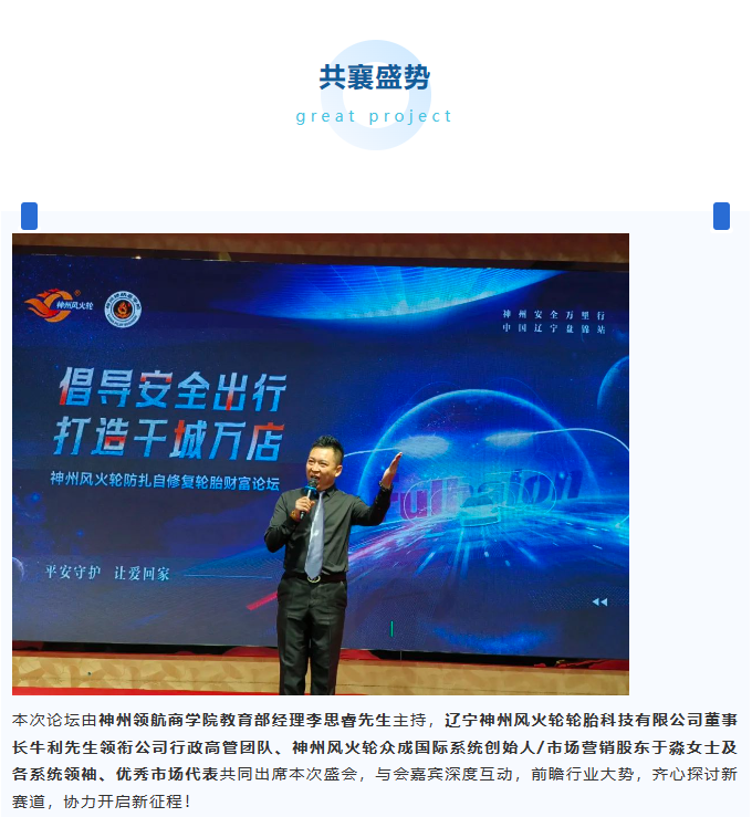 【盤錦站】“倡導安全出行,打造千城萬店”神州風火輪智能防扎自修復輪胎財富論壇
